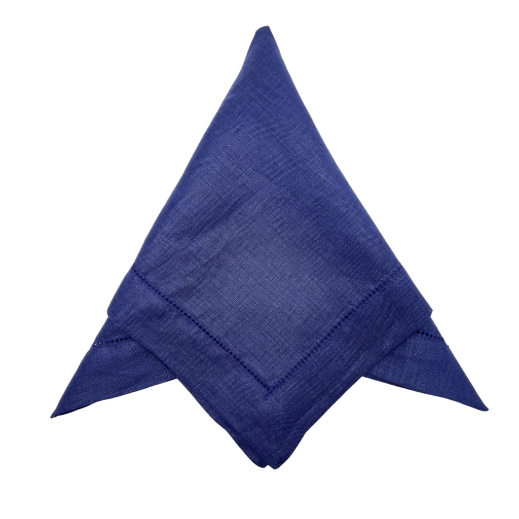 Guardanapo de linho puro, com acabamento em ponto ajour. Valor Unitário. Cor: AZUL MARINHO Medidas: 50X50 cm Tecido: 100% Linho