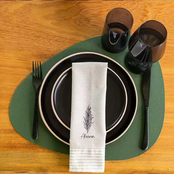 O Jogo Americano Orgânico 100% PVC, medindo 35x44cm apresenta um aspecto e textura que lembram couro natural, adicionando um toque orgânico que combina praticidade e estilo ao seu dia a dia.